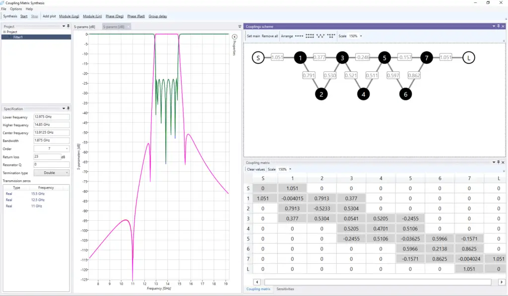 Furthermore, this versatile tool can also be employed for synthesizing coupling matrices aligned with a specified lowpass filter prototype response.